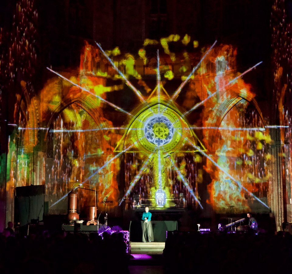 Les lieux sacrés tels que mausolées, basiliques, cathédrales… sont les témoins des premiers effets spéciaux de l’histoire, sorte de symbiose synesthésique entre peinture, musique, odeur et lumière.
