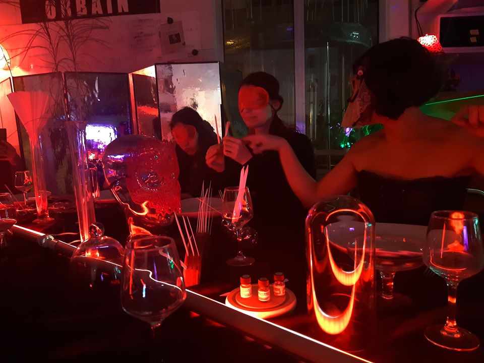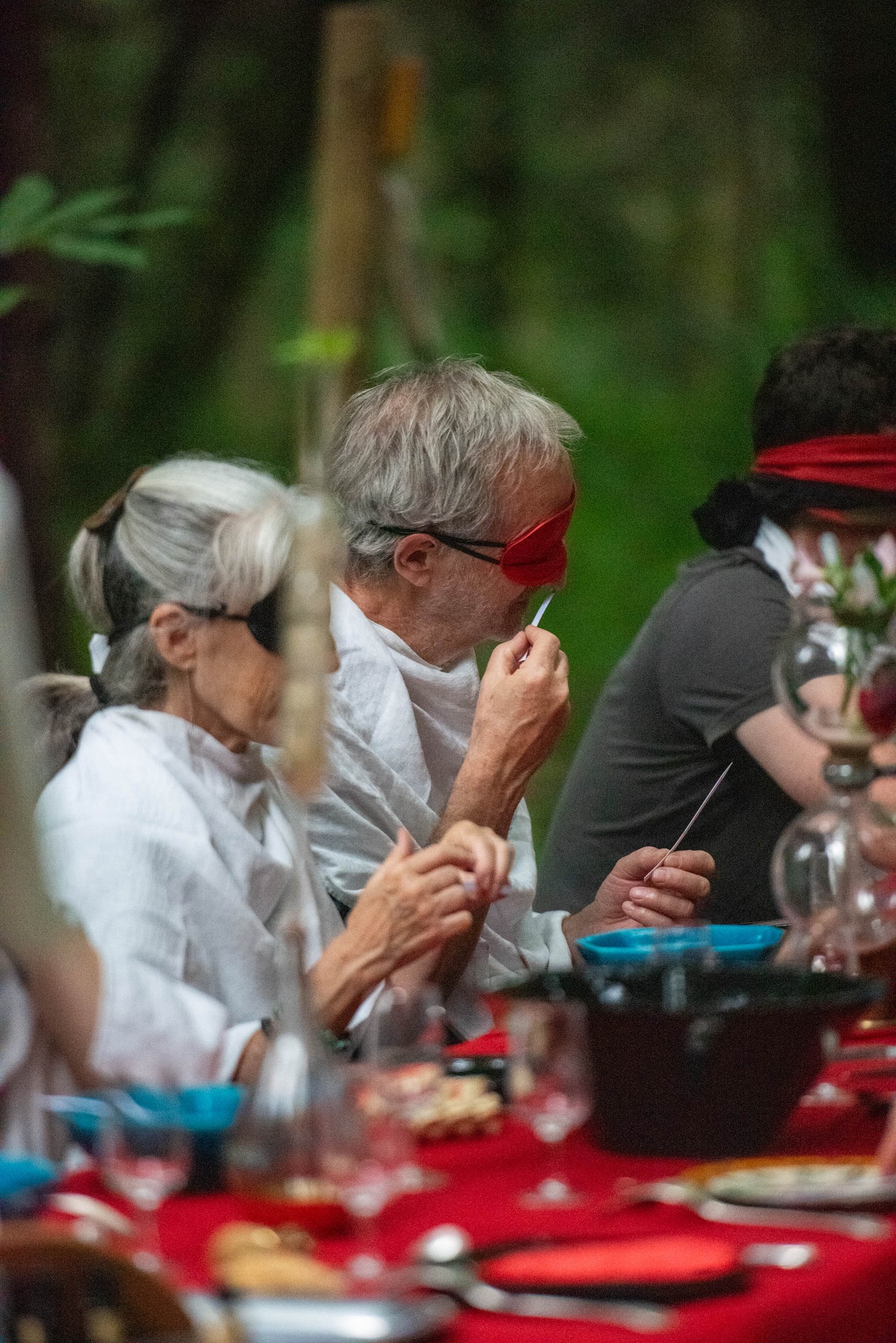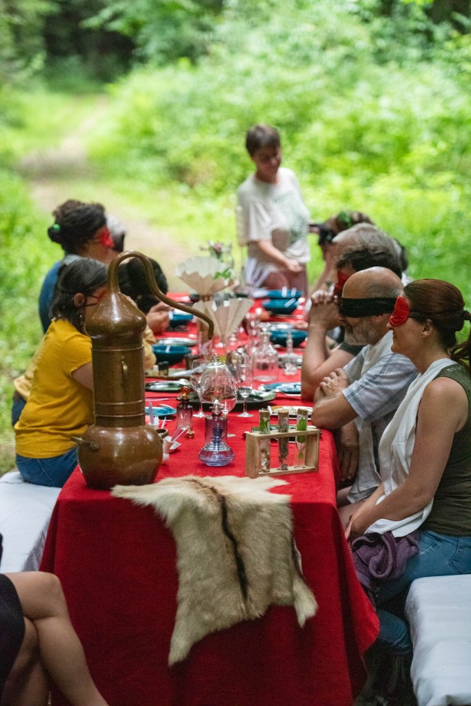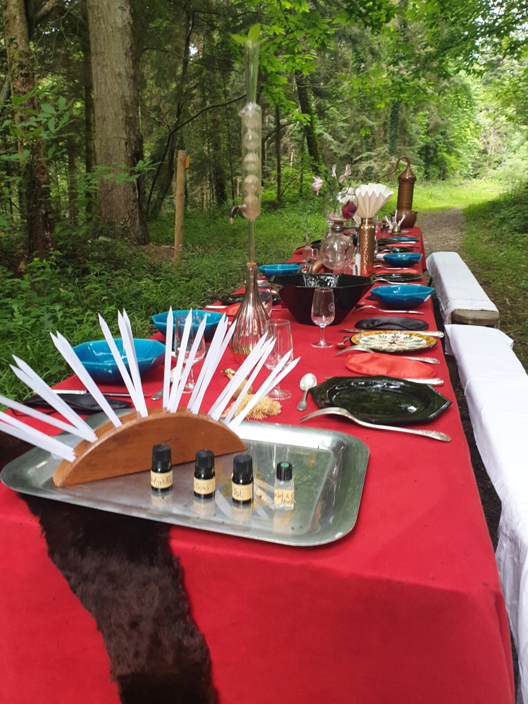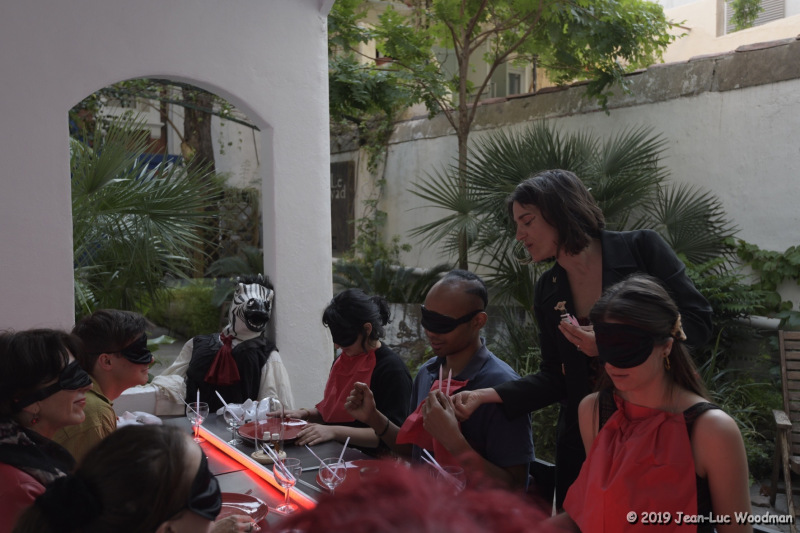 Bienvenue au Banquet d’Odeurs! Vous êtes aujourd’hui conviés à manger le monde par les narines.Votre table vous attend avec un menu d’exception. Des plats raffinés et des vins de grands crus vous sont servis sous forme de parfums. Par le biais d’un jeu olfactif, les maîtresses de cérémonie vous invitent à faire résonner entre eux les arômes qui composent votre entrée, votre plat et votre dessert pour un voyage inédit au coeur des espaces-temps de votre mémoire olfactive! Pour cette célébration collective , chaque met est accompagné de son histoire en sauce. Nous apportons également un grand soin à votre parole olfactive et à vos échanges durant cette ivresse. Bon appétit!